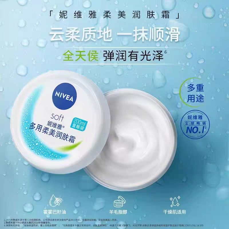 妮维雅柔美润肤霜面霜绵羊油全身保湿补水乳液护肤200ml全家正品