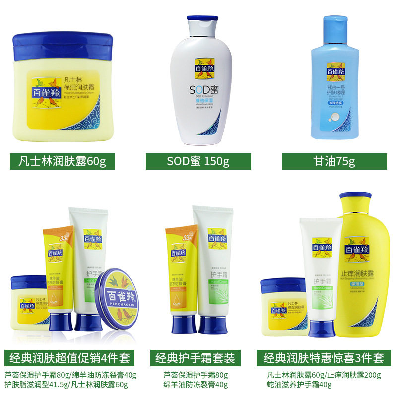 百雀羚甘油凡士林小黄油止痒润肤露护肤脂面霜绵羊油浴后乳护手霜