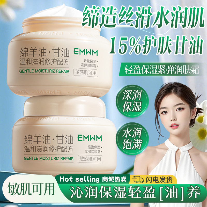 EMWM正品老牌国货面霜绵羊油黄芪补水保湿防干燥去黄提亮舒缓霜