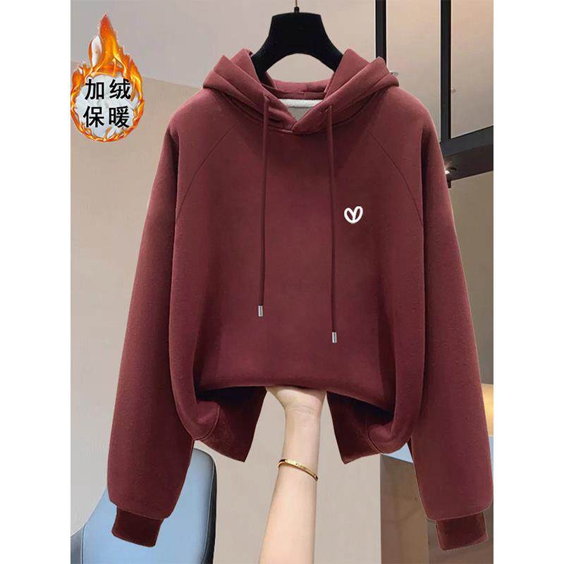 - 卫衣女加绒加厚 连帽 短款 冬季