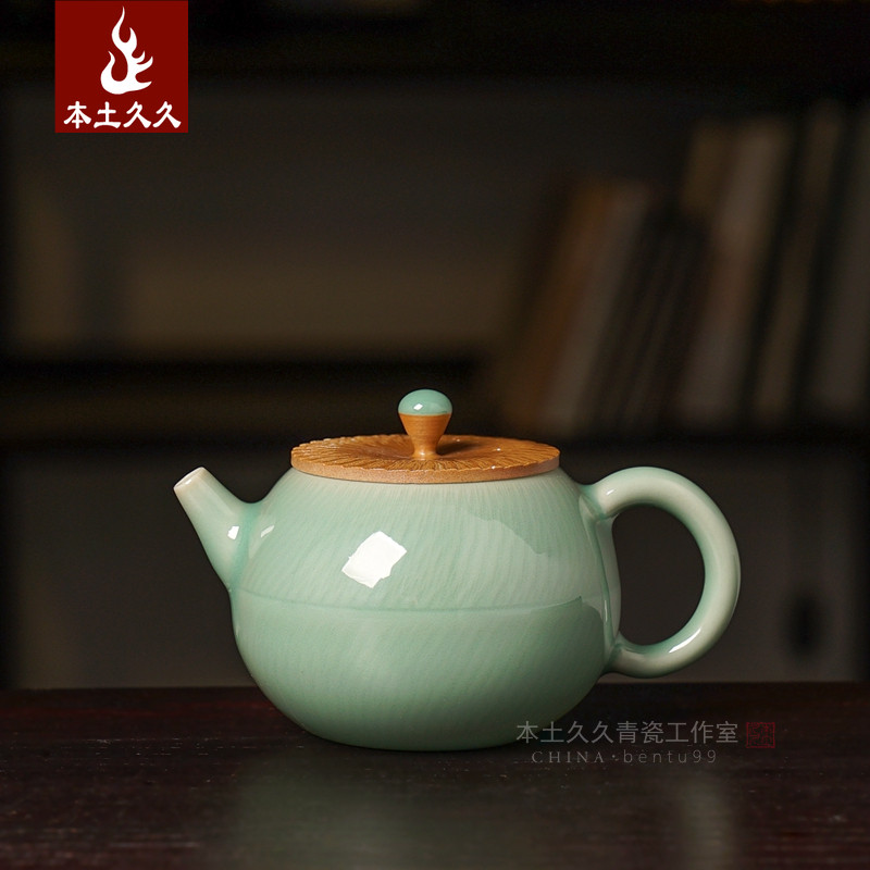 【觅道】跳刀文旦壶 龙泉青瓷功夫茶具家用泡茶壶 梅子青手工壶