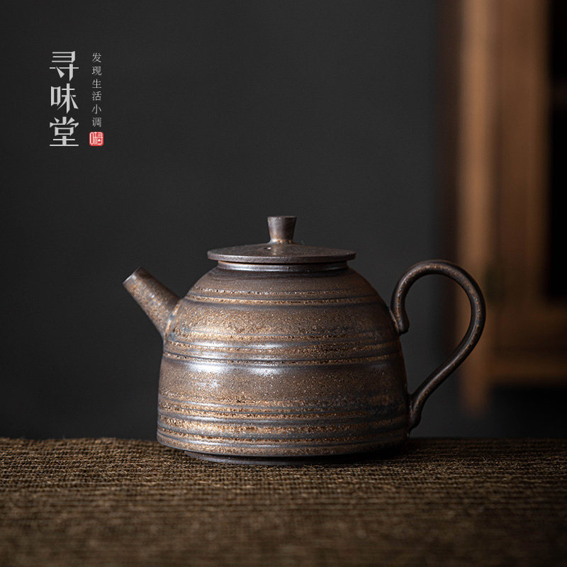 古铜釉粗陶正把茶壶|复古鎏金铁锈釉中式手工壶功夫茶具泡茶单壶