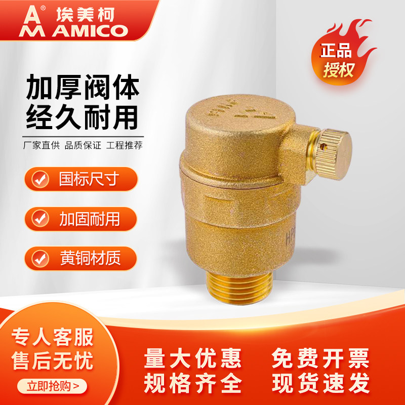 埃美柯自动排气阀黄铜螺纹球阀暖气热水器垂直跑气排空气阀不锈钢