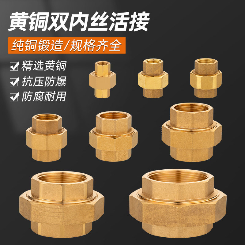 4分6分1寸加厚内丝铜活接暖气热水器内牙铜活接水泵水管活接头