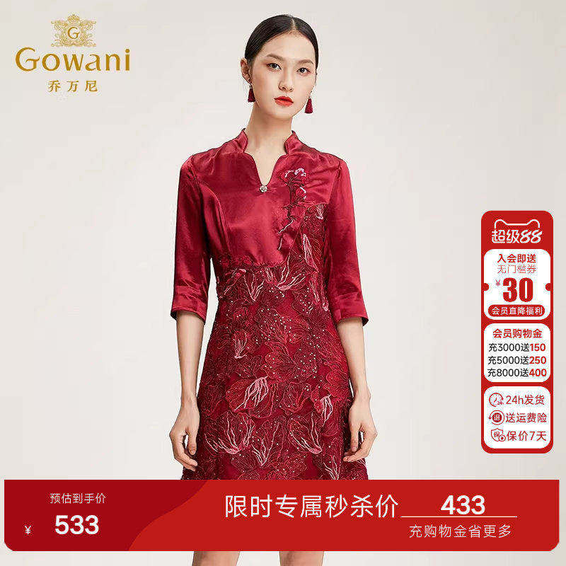 绣花新款时尚气质修身显瘦连衣裙女中长款气质名媛风裙子大牌同款