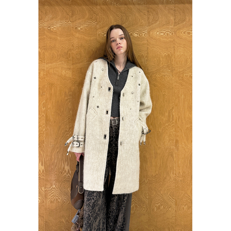 - 收腰大衣毛呢