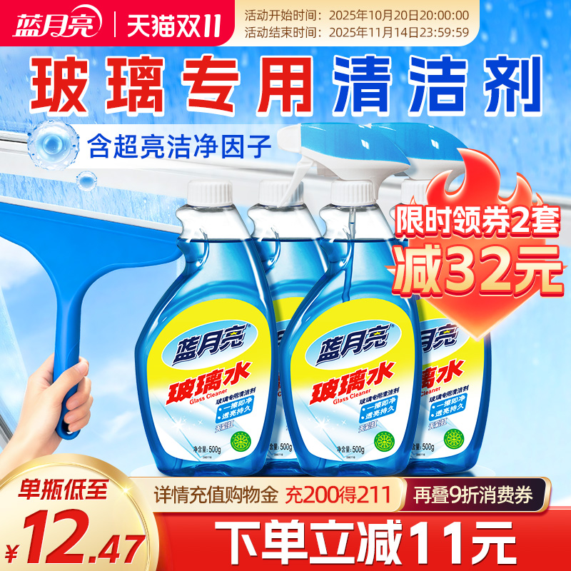 蓝月亮玻璃清洁剂500g套组 玻璃水家用擦窗 清洗浴室强力去污除垢