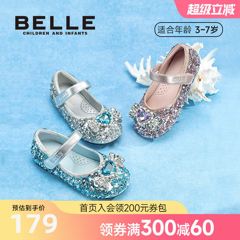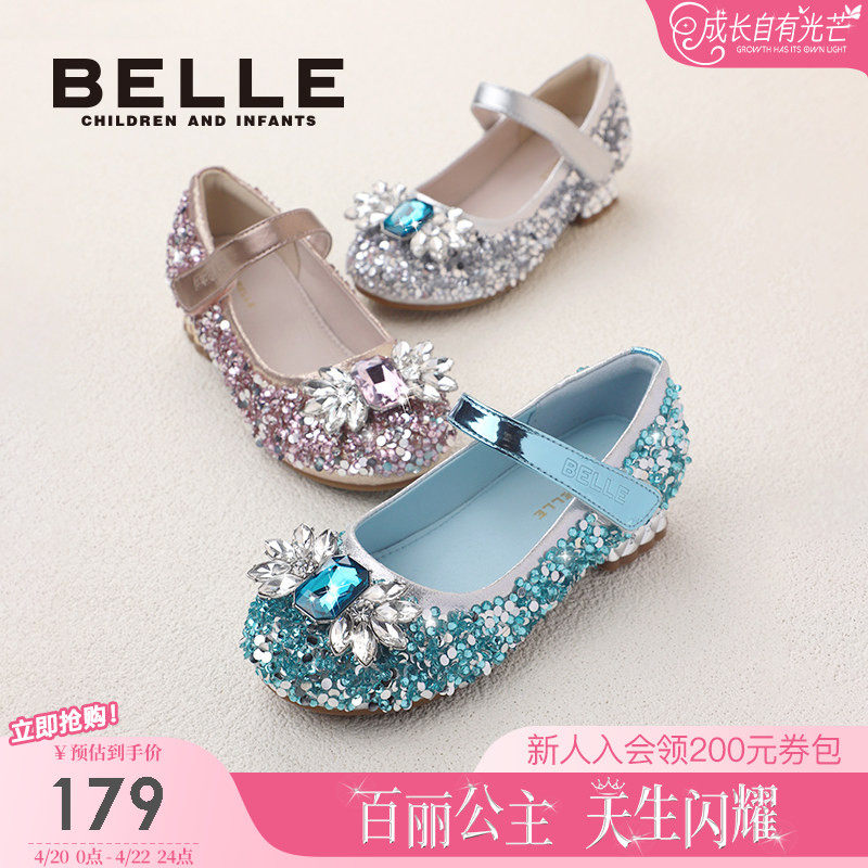 百丽童鞋女童皮鞋2026春夏水晶闪钻爱莎公主鞋软底防滑小女孩单鞋