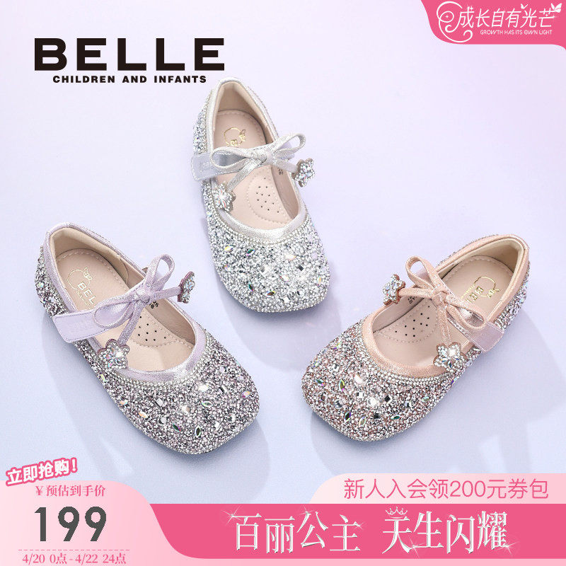 百丽童鞋女童水晶公主鞋春季洋气水钻软底皮鞋儿童时尚单鞋宝宝鞋