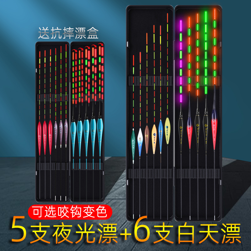 5支夜光漂6支高灵敏日夜两用鱼漂套装咬钩变色电子浮漂鲫鱼漂漂盒