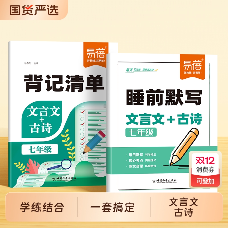 【易蓓】初中语文文言文古诗背记清单睡前默写人教版七八九年级译注及赏析古诗词默写解读中考文言文专项考点每日一练课堂笔记