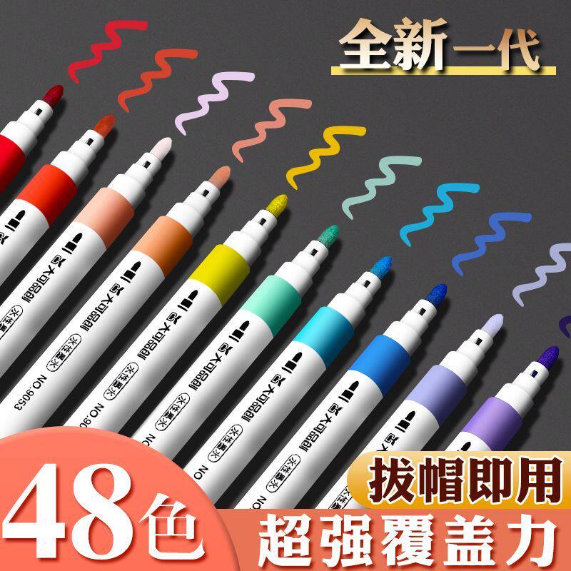 直液式丙烯马克笔软头水彩笔小学生美术专用48色儿童可水洗幼儿园不透色可擦绘叠色画画笔芯高颜值彩色笔套装