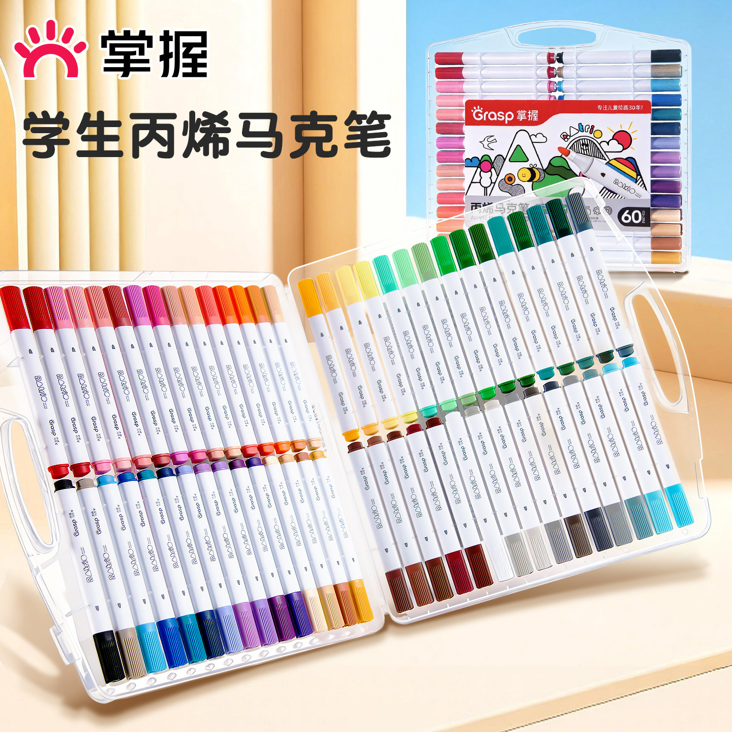 掌握直液式软头丙烯马克笔小学生美术专用不透色可叠色儿童可水洗彩笔套装画笔12/24/36/48色正品防水手绘diy