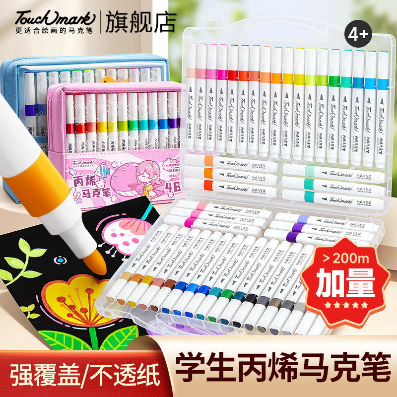 泰驰Touchmark丙烯马克笔小学生美术专用24色水彩笔儿童可水洗无毒画笔幼儿园不透色可叠色笔芯彩色画画笔