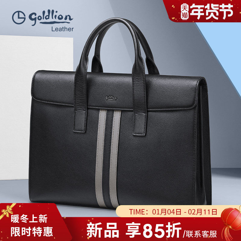 金利来新款商务公文包男士真皮大容量手提包头层牛皮办公出差男包