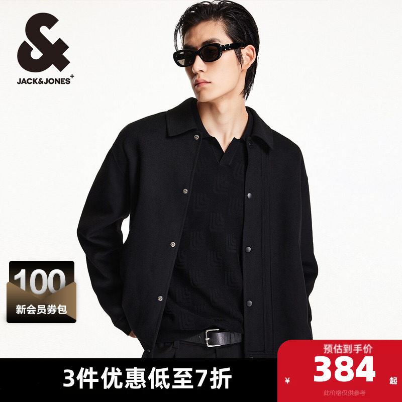 杰克琼斯男装春秋季毛呢大衣短款保暖外套宽松休闲百搭舒适上衣款