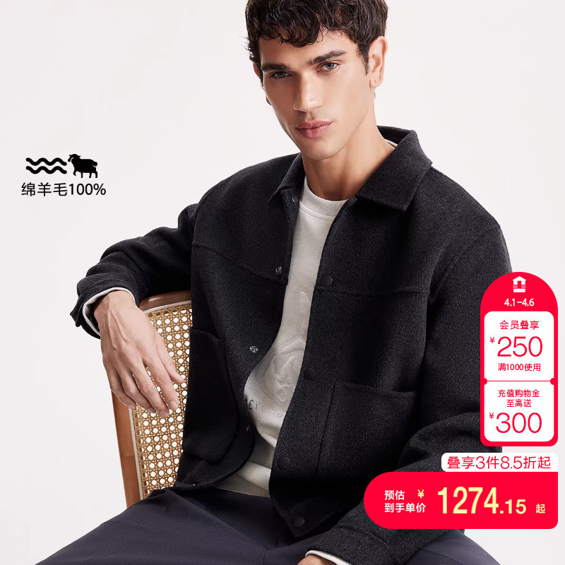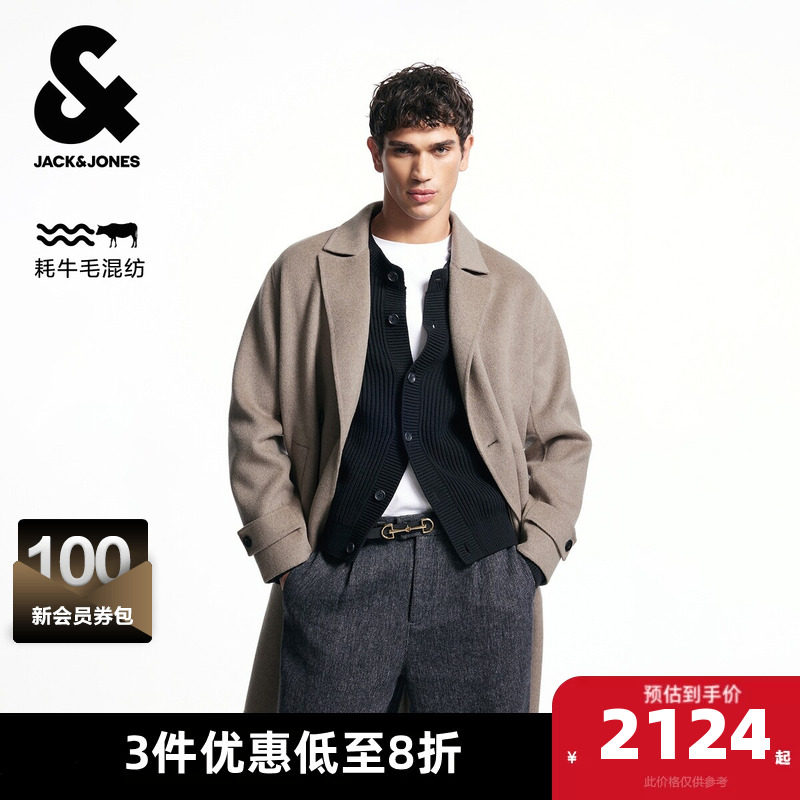 vj区绫致杰克琼斯冬季质感舒适纯羊毛百搭舒适外套短款毛呢大衣男