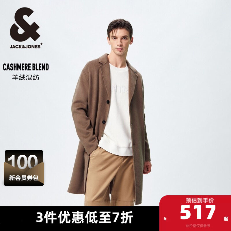 杰克琼斯春秋男士外套商务休闲美拉德风衣双面毛呢子大衣上衣男装
