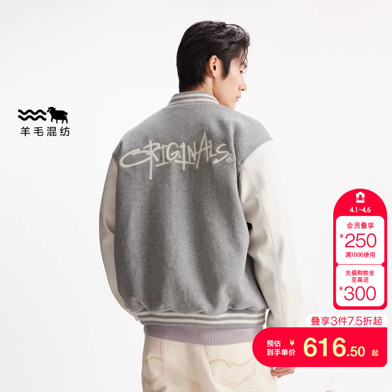 杰克琼斯男装春秋季毛呢大衣夹克外套宽松时尚棒球服百搭潮流字母