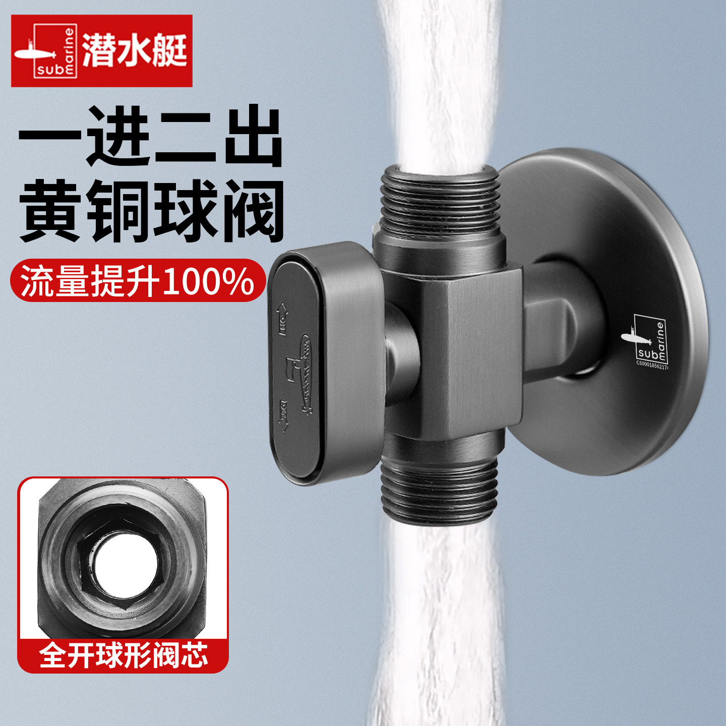 潜水艇角阀进水三通分水阀全铜一分二接头家用水龙头一进二出开关