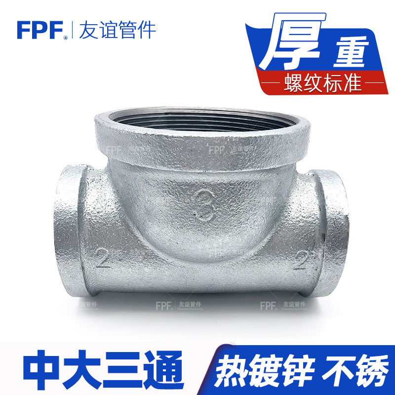 中大三通变径水管一进二出连接件变径内丝镀锌异形洒水车dn65变50