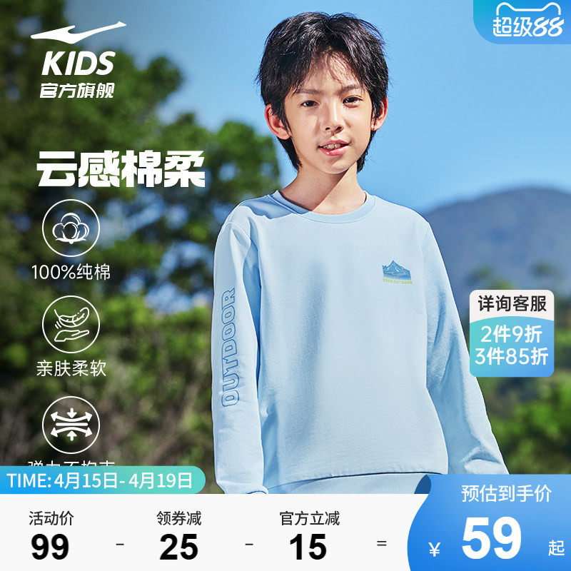 特步童装春季新款男童潮流套头休闲卫衣大童运动儿童亲肤柔软上衣