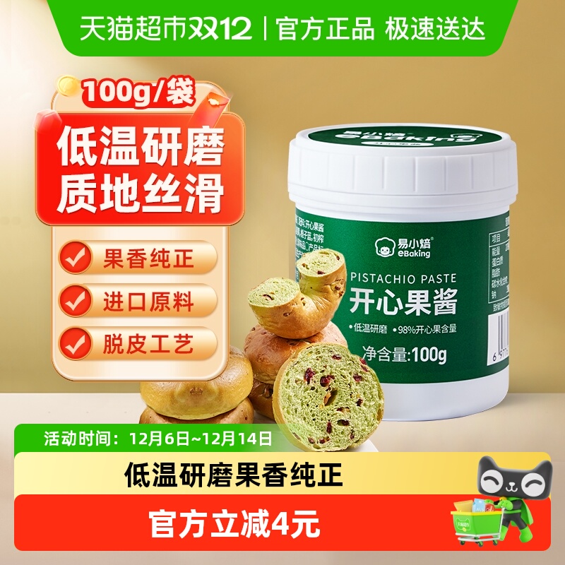 包邮易小焙开心果酱100g果泥马卡龙蛋糕烘培材料无添加绿色果酱