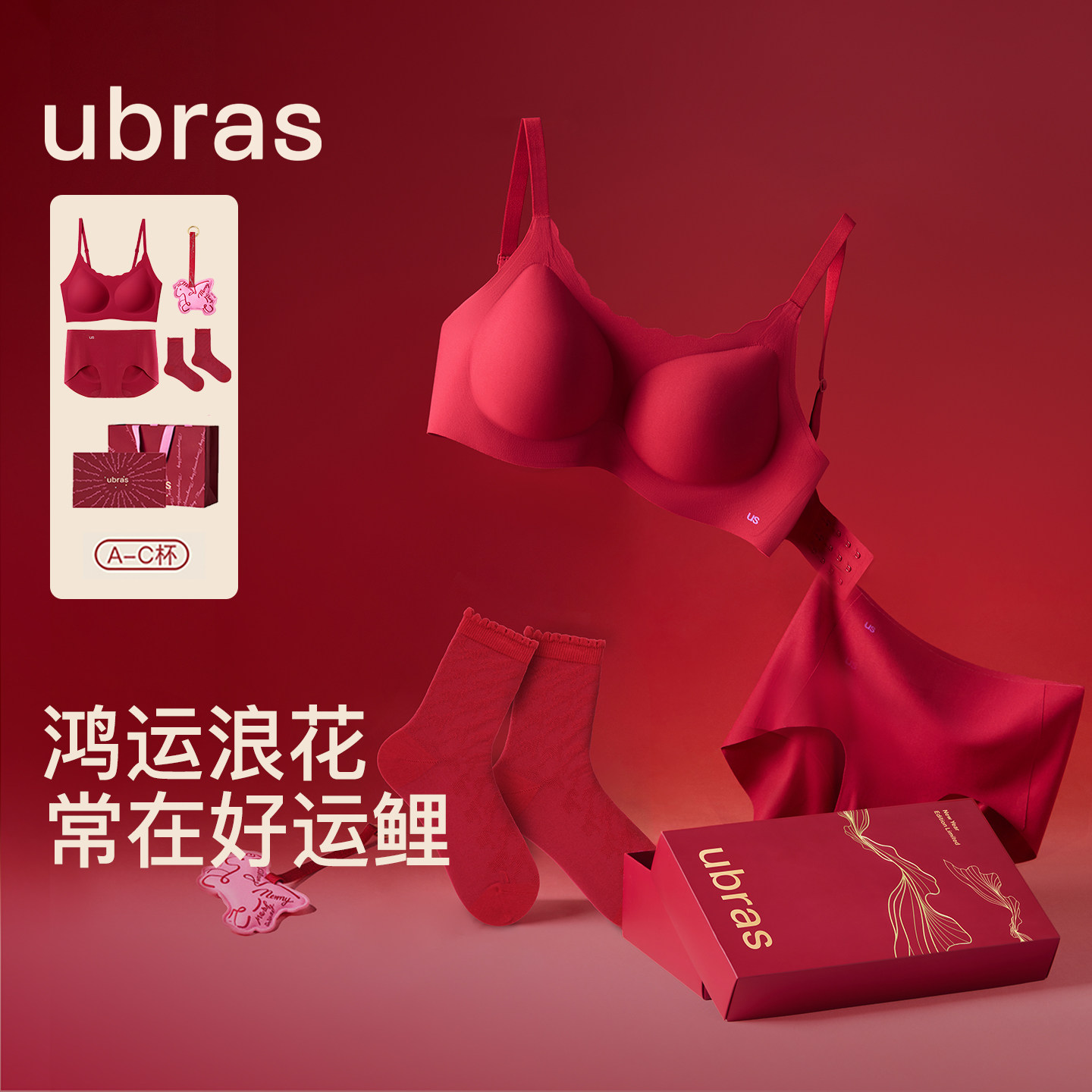 ubras大红盒新款马年本命年内衣套装礼盒红色文胸内裤女结婚送礼