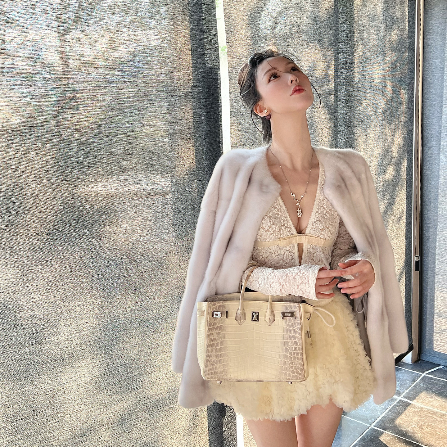 Jnnlh Studio【小奶貂】da牌感!高ji环保貂!藤格纹保暖毛毛外套