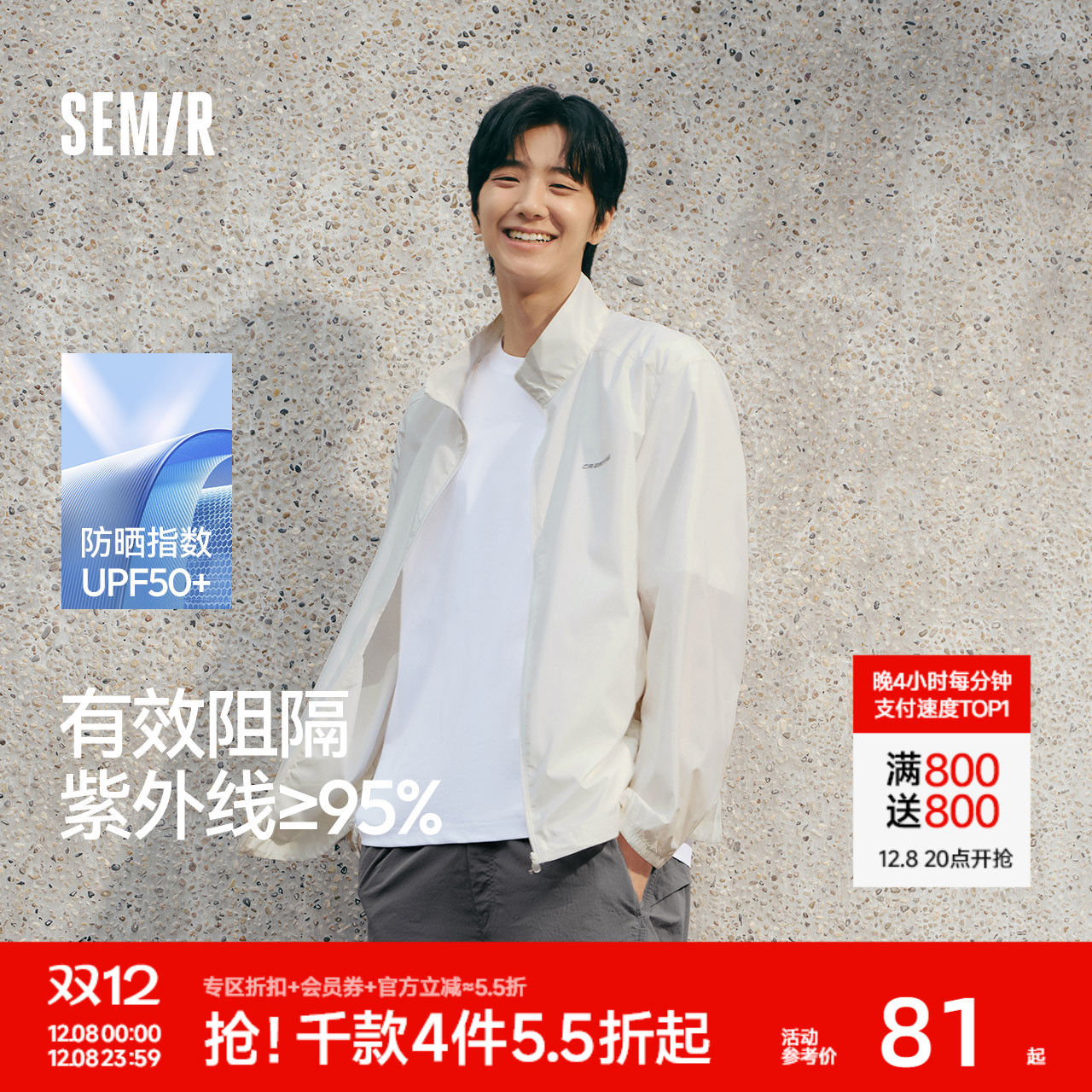 森马外套男轻薄款防晒衣UPF50+夏装2025新款立领夹克通勤基础百搭