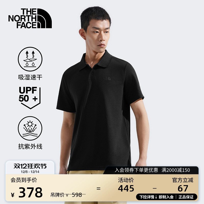 北面男UPF防晒衣速干衣短袖Polo户外吸湿透气TheNorthFace|7WD2