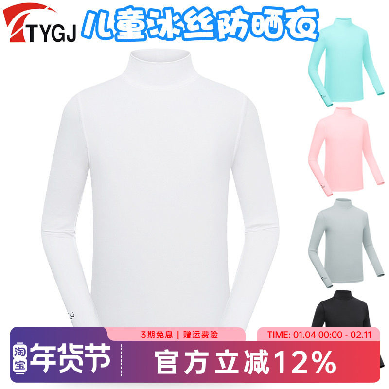夏季高尔夫服装 儿童冰丝防晒衣 男女童打底衫高领长袖运动球衣服