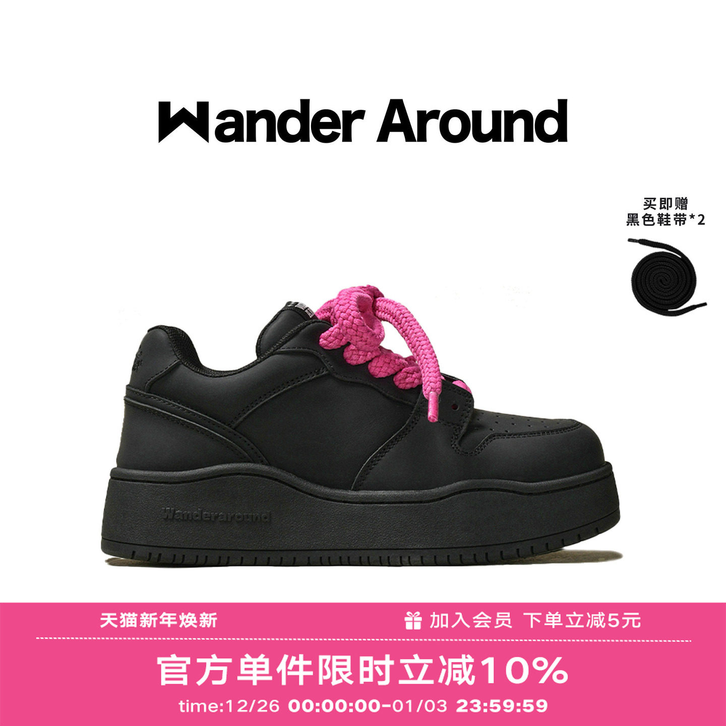 【明星同款】Wander around春秋款黑色厚底增高休闲板鞋男女同款
