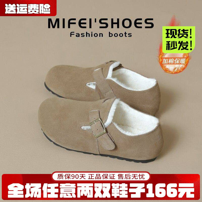 米霏真皮勃肯鞋女2026秋冬厚底全包小土豆加绒棉鞋大码女鞋41到43