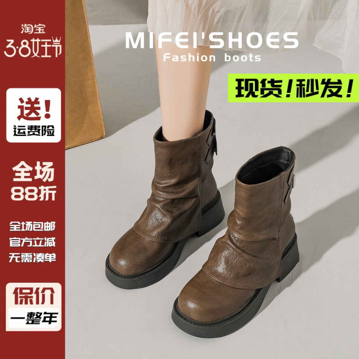 美拉德短靴女2025秋冬新款厚底棕色堆堆马丁靴超火大码女靴41到43