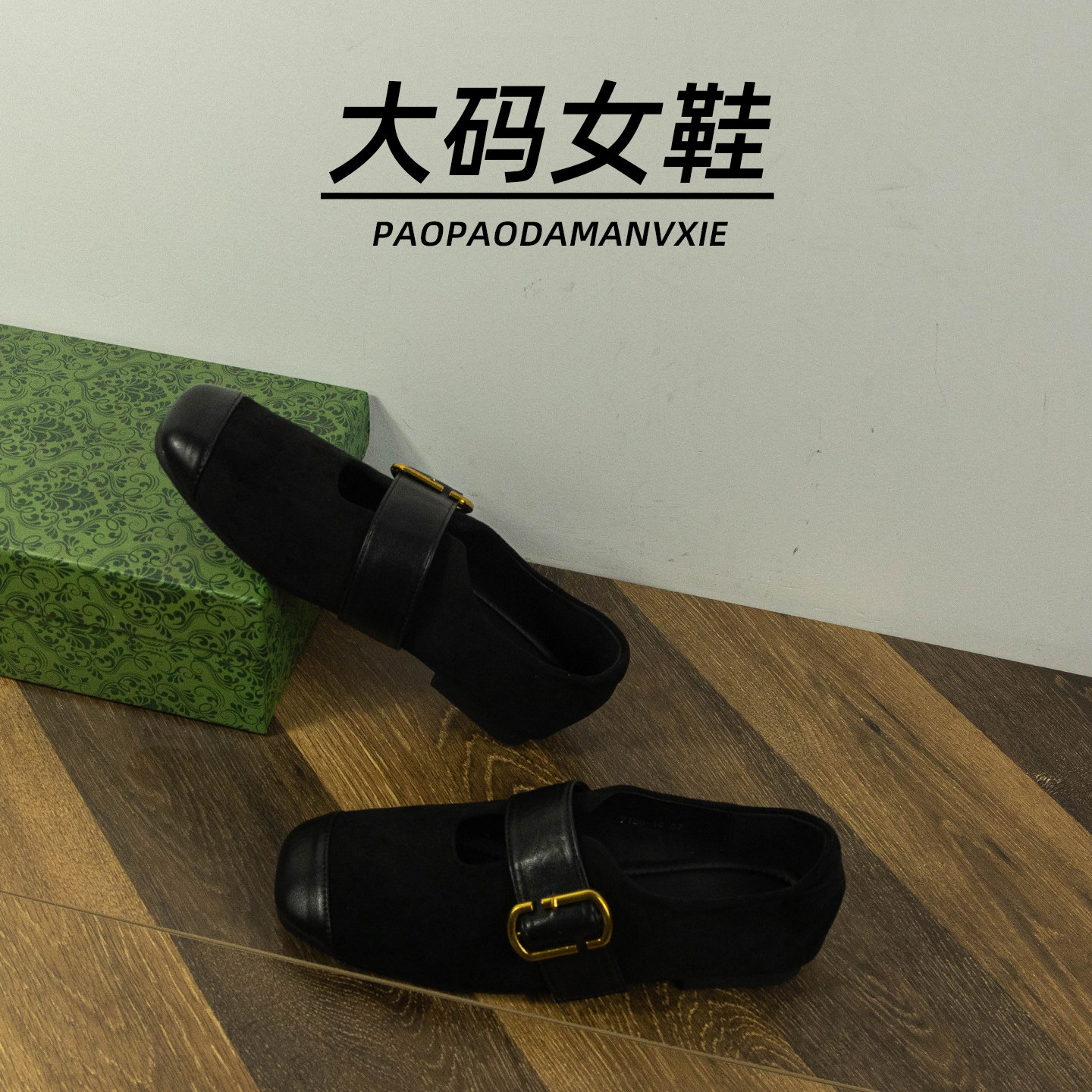 大码女鞋41到43宽脚胖单鞋2025秋季复古方头玛丽珍鞋芭蕾鞋配裙子