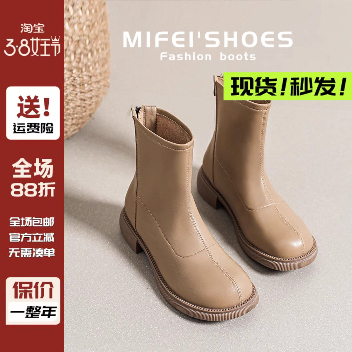 大码女鞋41-43秋冬新款切尔西短靴英伦圆头中跟百搭侧拉链女靴子