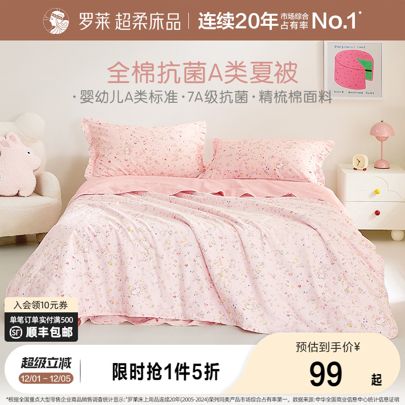 罗莱儿童A类抗菌全棉夏被婴幼儿专用入园被子空调被夏凉被可机洗