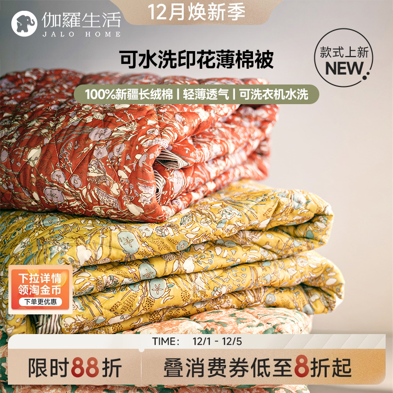 伽罗生活可水洗新疆长绒棉印花透气毯子纯棉空调被夏凉被春秋薄被