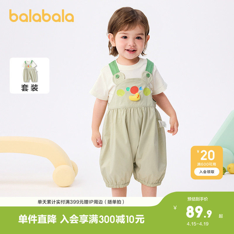 【商场同款】巴拉巴拉宝宝短袖套装男童背带裤两件套可爱纯棉柔软