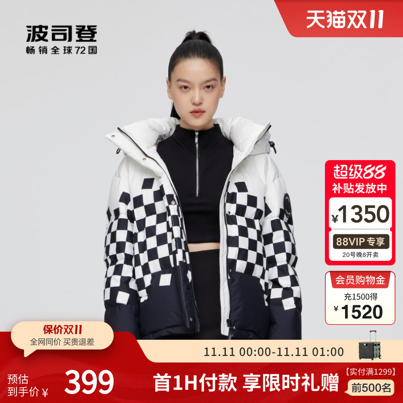 波司登2025新款女士宽松休闲菱形绗线连帽短款保暖轻薄羽绒服外套