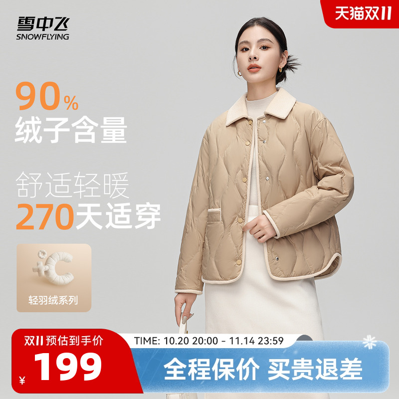 雪中飞2025秋季新款女士短款羽绒服翻领气质时尚小香风休闲外套