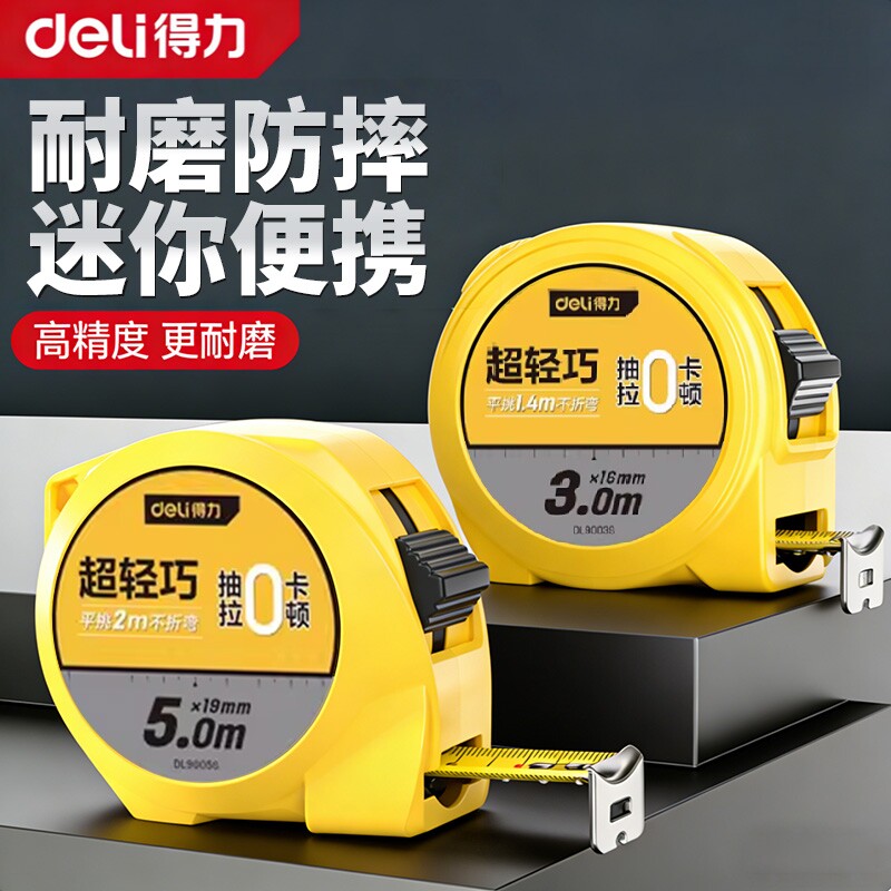得力工具卷尺家用5米3米加厚加硬高精度专业钢卷尺迷你尺盒量尺