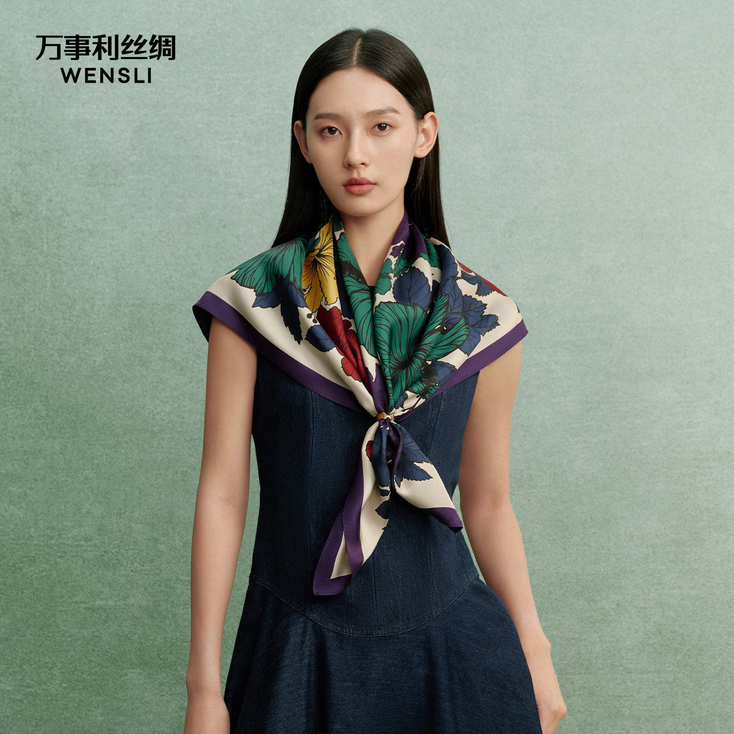 万事利新款100%桑蚕丝真丝丝巾双面印花高级时尚百搭大方巾四时景