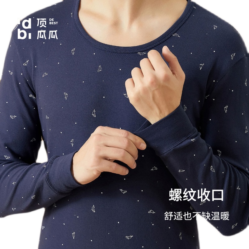 顶呱呱男士保暖内衣套装秋冬季薄款圆领印花棉毛衫顶瓜瓜秋衣秋裤