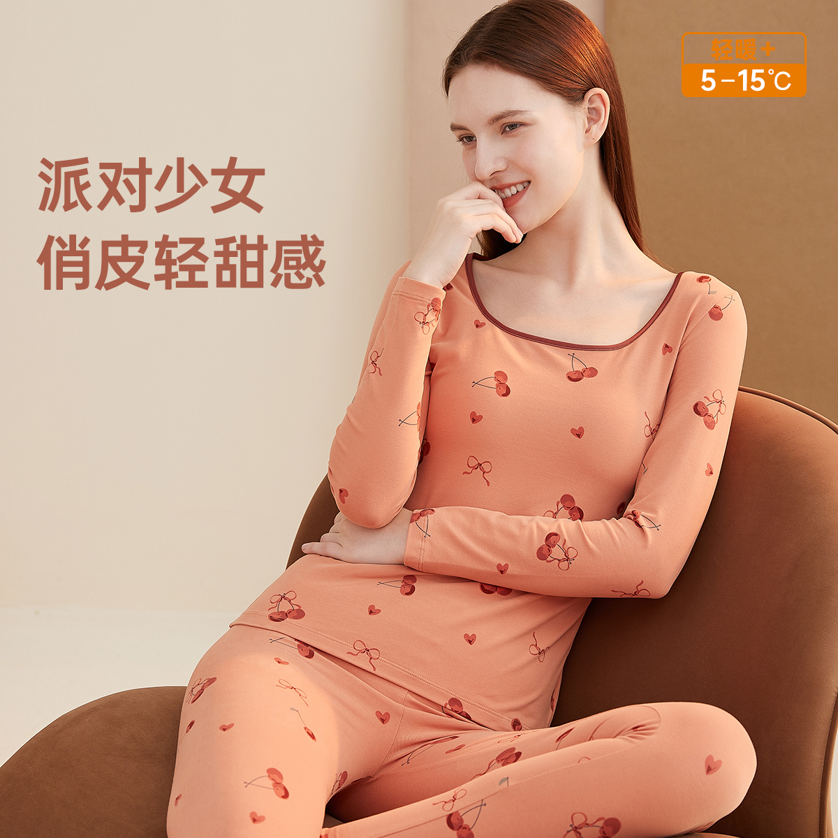 顶呱呱顶瓜瓜修身印花打底秋衣秋裤女士保暖套装弹力美体学生内衣