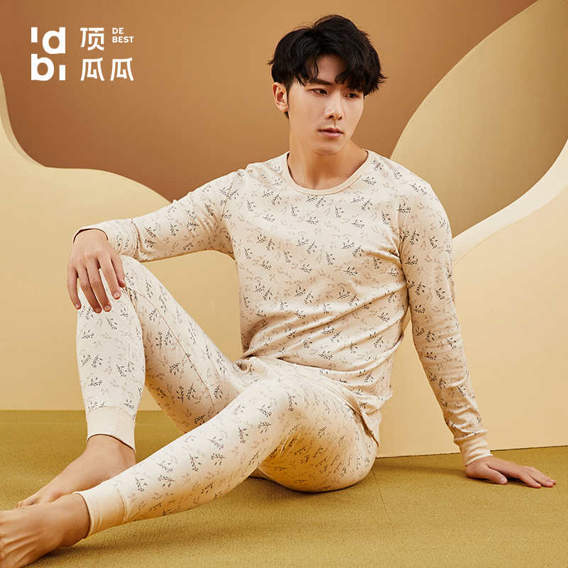 顶瓜瓜顶呱呱纯棉保暖内衣男秋冬打底秋衣秋裤套装男士中厚线衣裤