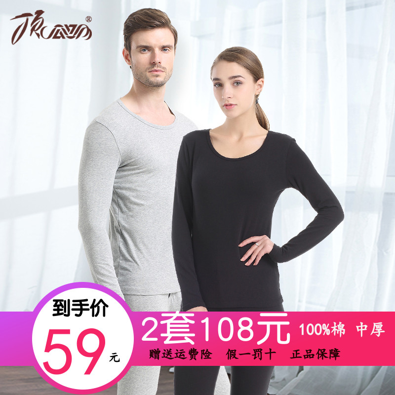 顶呱呱秋衣套装女秋裤棉毛衫纯棉全棉冬季男士保暖内衣线衣线裤男