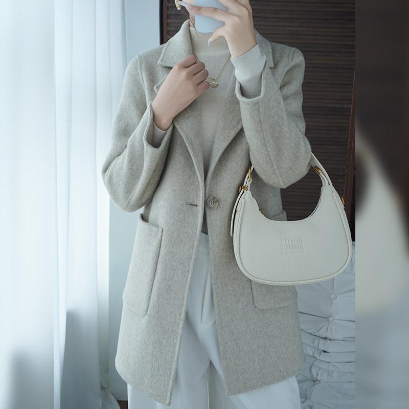 新款双面羊绒大衣女中长款西装双面呢小个子羊毛呢子工装毛呢外套