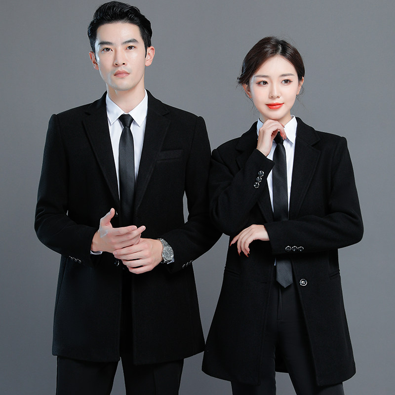 男女同款职业装羊毛毛呢外套中长款工作服酒店银行呢子大衣工装冬
